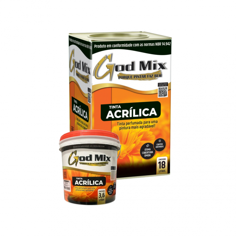 - Tinta Acrílica Econômica God Mix para quem procura economia sem abrir mão da qualidade. Ótima consistência, fácil aplicação, suave fragrância, sua fórmula permite excelente cobertura e rendimento, além de ser antimofo.